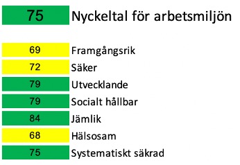 | Nyckeltal för arbetsmiljön(0-100) Målvärde 75 | ![]() |